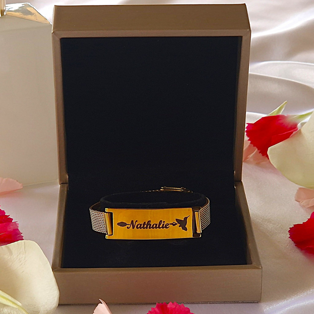 Bracelet acier inoxydable doré ajustable avec gravure personnalisée