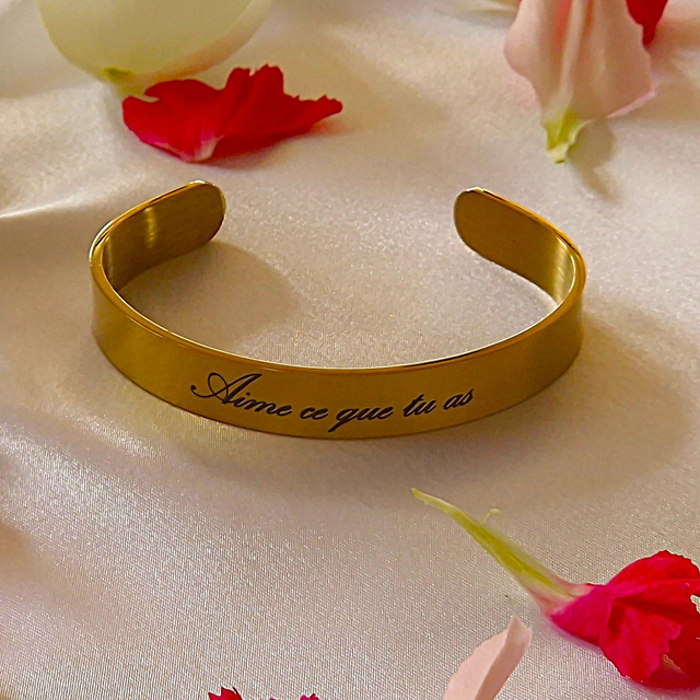 Manchette acier inoxydable doré avec gravure personnalisée